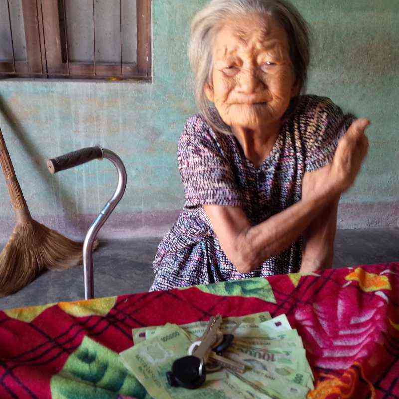 Chào cả nhà! Tình hình bà cụ lúc này già hơn trước, sức khoẻ giảm sút! Vừa rồi, bà cụ đi trong nhà nhưng vẫn bị té, giờ đi phải có thêm gậy chống! CMTX (300/th) & quỹ Pacie (200/th) qduy đã trao lượt 2 tháng cho bà cụ. Mong bà bình yên.