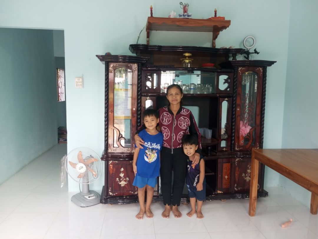 Hai mẹ con chị Hoa với chiếc tủ mới