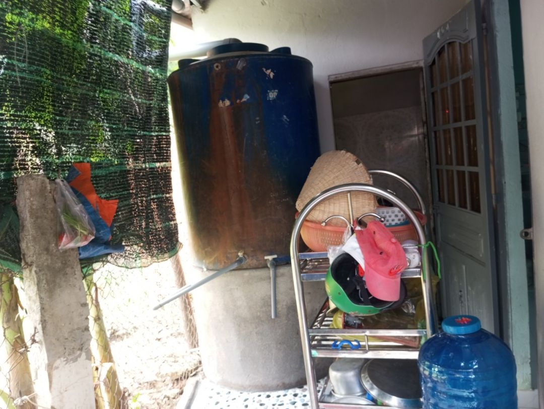 Mới đây mình ghé thăm nhà chị Hoa. Nghe kể, trước đây con gái chị Hoa chưa đủ tuổi nhưng cũng lập gia đình và có 1 đứa con thì bỏ nhau. Sau đó cháu lại có thêm 2 đứa con khác nhưng khác cha. Nay chị Hoa phải ở nhà nuôi 3 đứa cháu còn cháu nó đi bán quán caffe. Mới đây bên xã thấy chị Hoa tội nghiệp nên sửa thêm phần bếp cho chị.