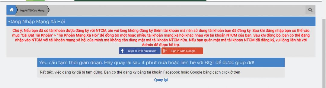 Hôm qua, em có thử đăng ký 1 tài khoản trên DĐ nhưng không hiện thông tin đăng ký mà hiện cái thông báo này.