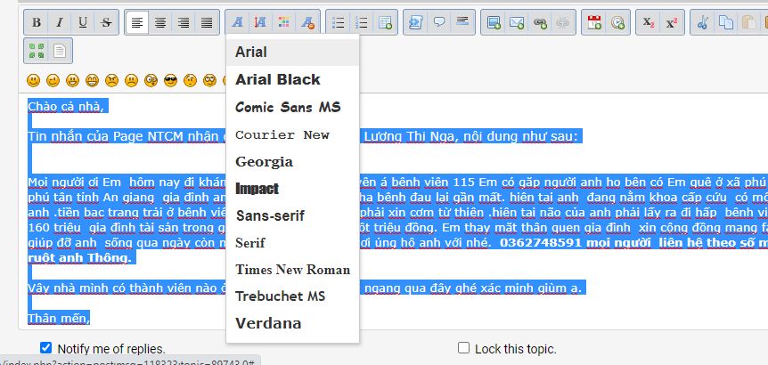 Cảm ơn chị đã cập nhật tình hình bất ổn của font chữ và trình soạn thảo, tổ kỹ thuật đang tiến hành kiểm tra và sẽ sớm xử lý lỗi này để nhà mình có thể sử dụng diễn đàn một cách mượt mà nhất!