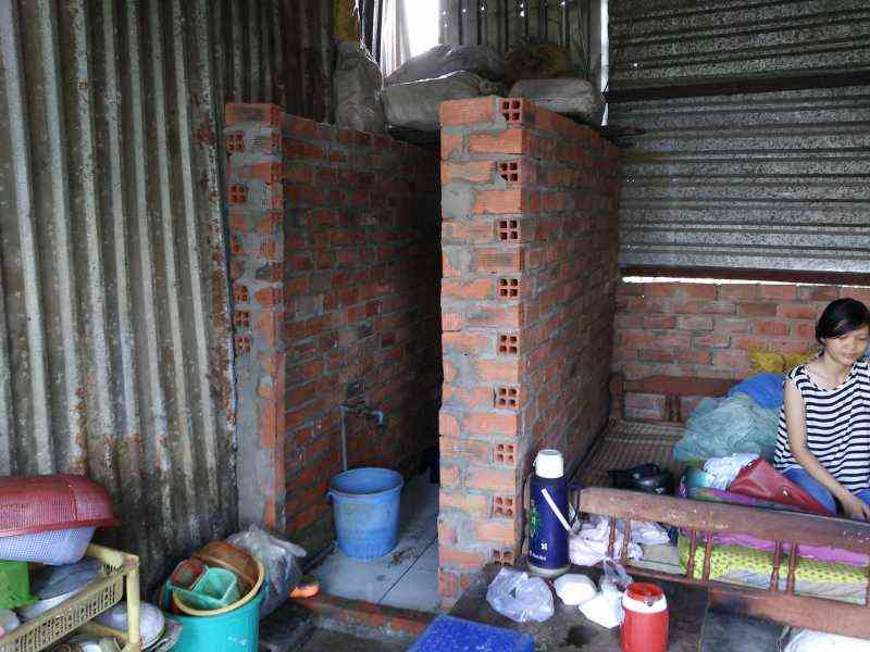 Do phòng này chủ nhà không đổ nền và không xây nhà vệ sinh đàng hoàng nên ông bà đã nhờ thợ đổ nền xi măng và xây nhà vệ sinh cho sạch sẽ, chi phí tổng cộng là 1.400.000 đồng.