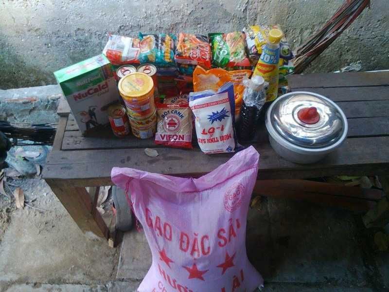 -Vật phẩm tích trữ,  do chị Vitcon gửi cho ông bà: mì gói, sữa, cá mòi, cà bông