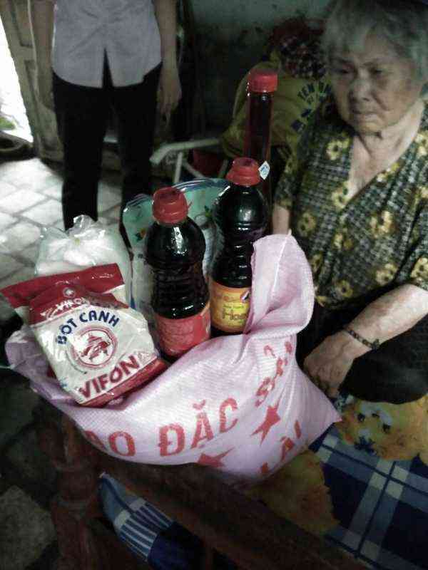 Đồng thời chị Vitcon có gửi mua thêm một ít nhu yếu phẩm chế biến sẵn để ông bà khỏi phải đi chợ trong vài ngày & 300.000 đồng cho ông bà tiêu xài.