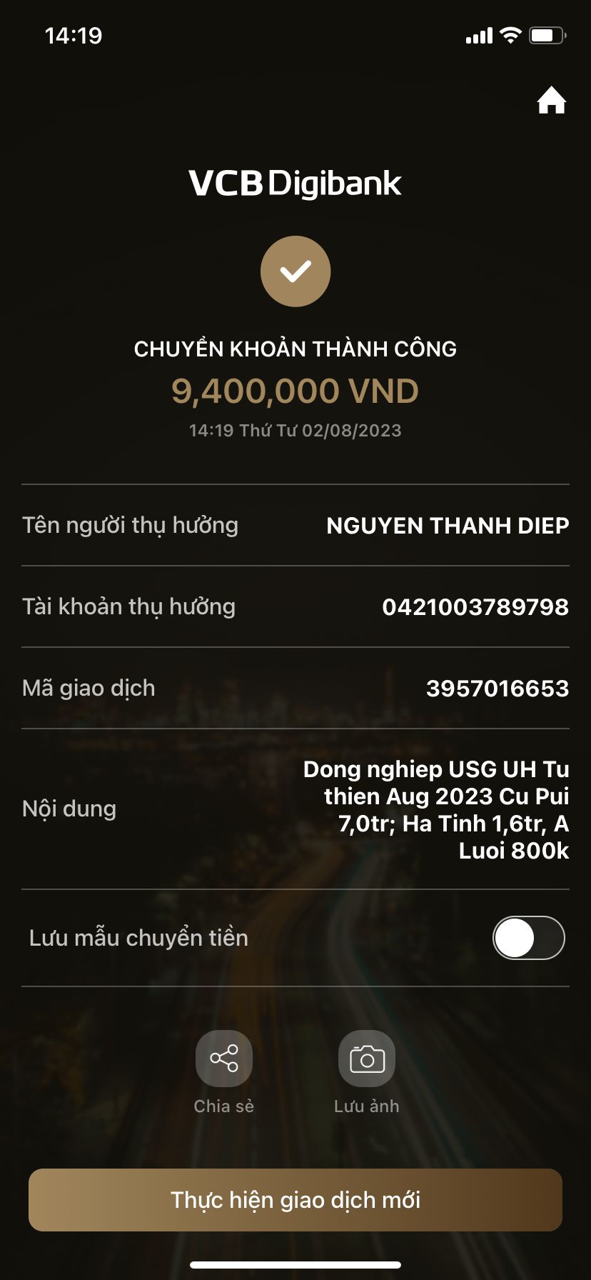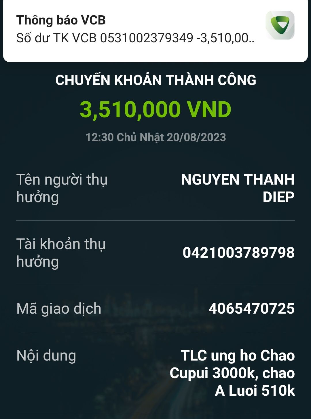 TLC đã chuyển tiền...