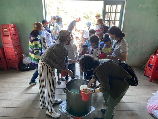 Cũng lâu nhóm mới quay lại buôn Bhung để tham gia nấu và phát cháo cùng các ông bố bà mẹ trong buôn!