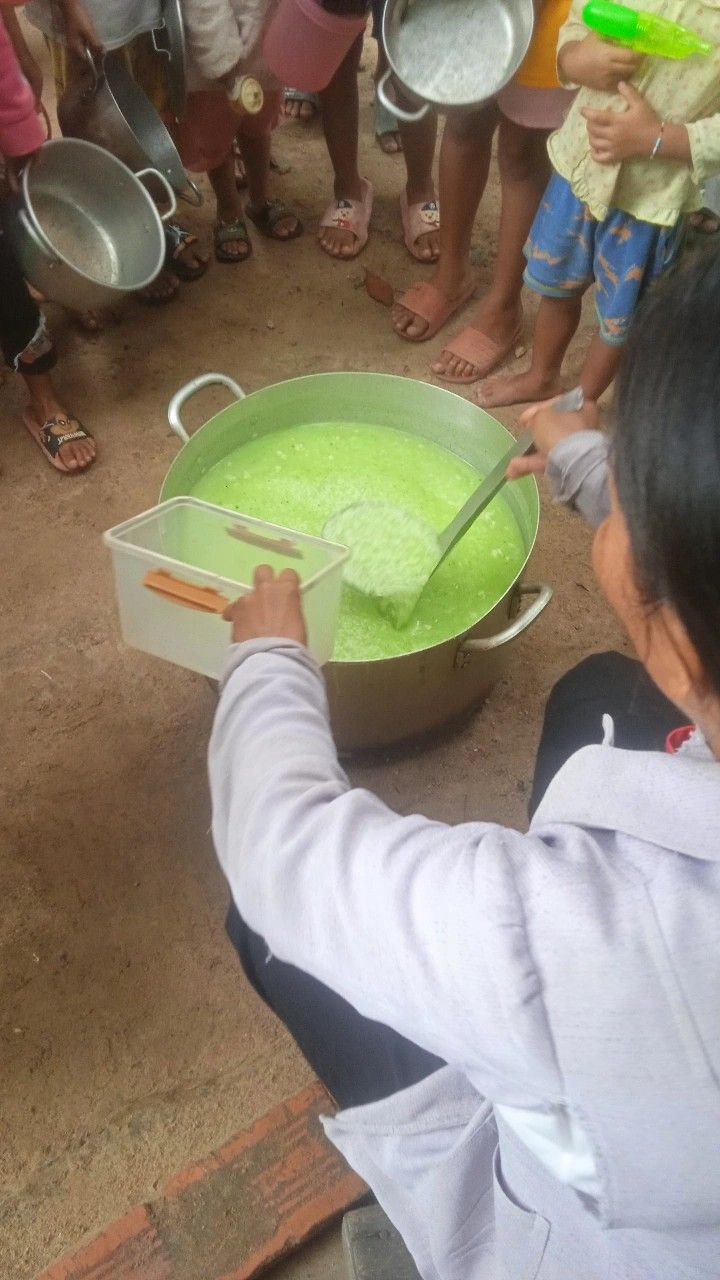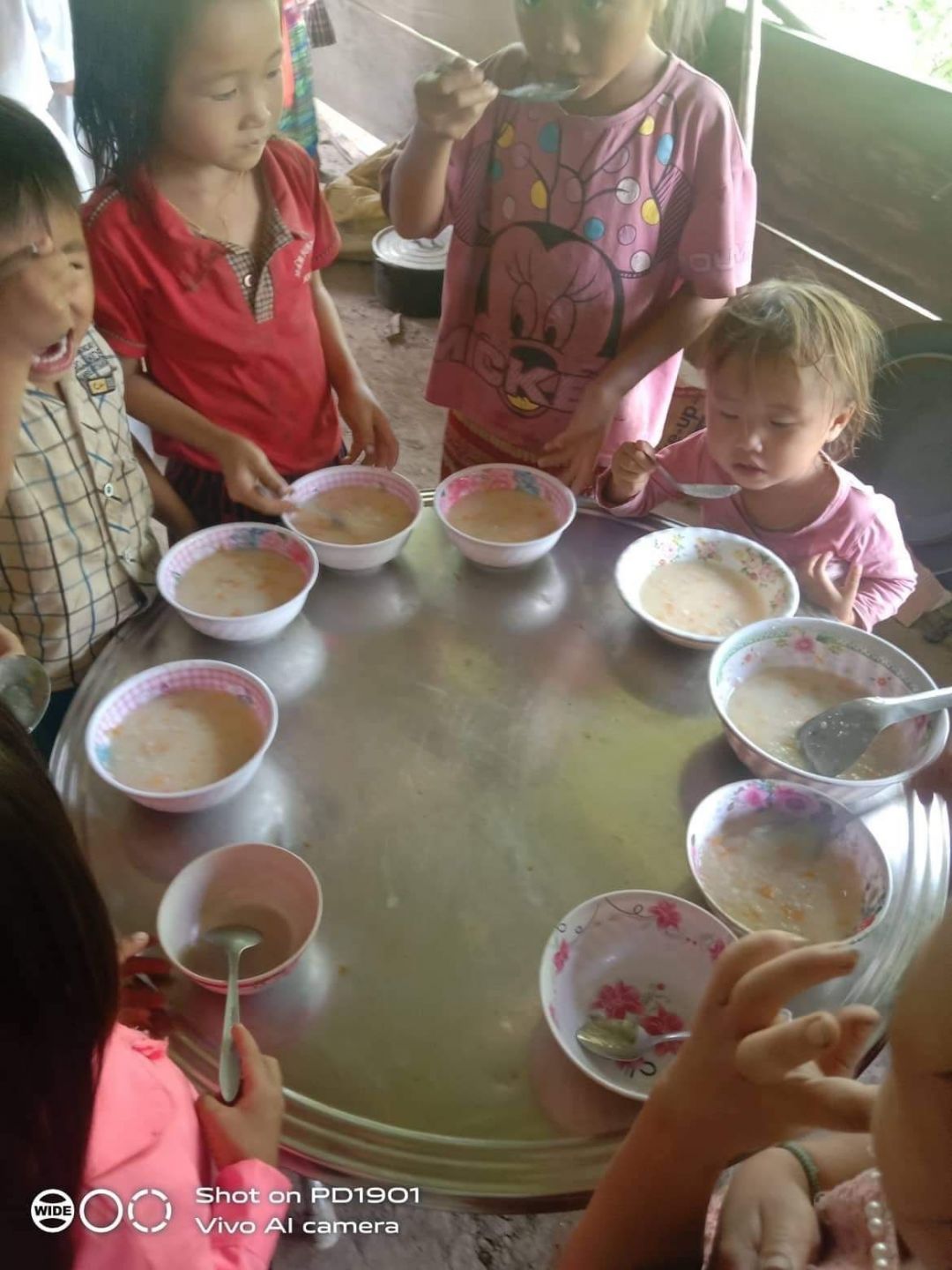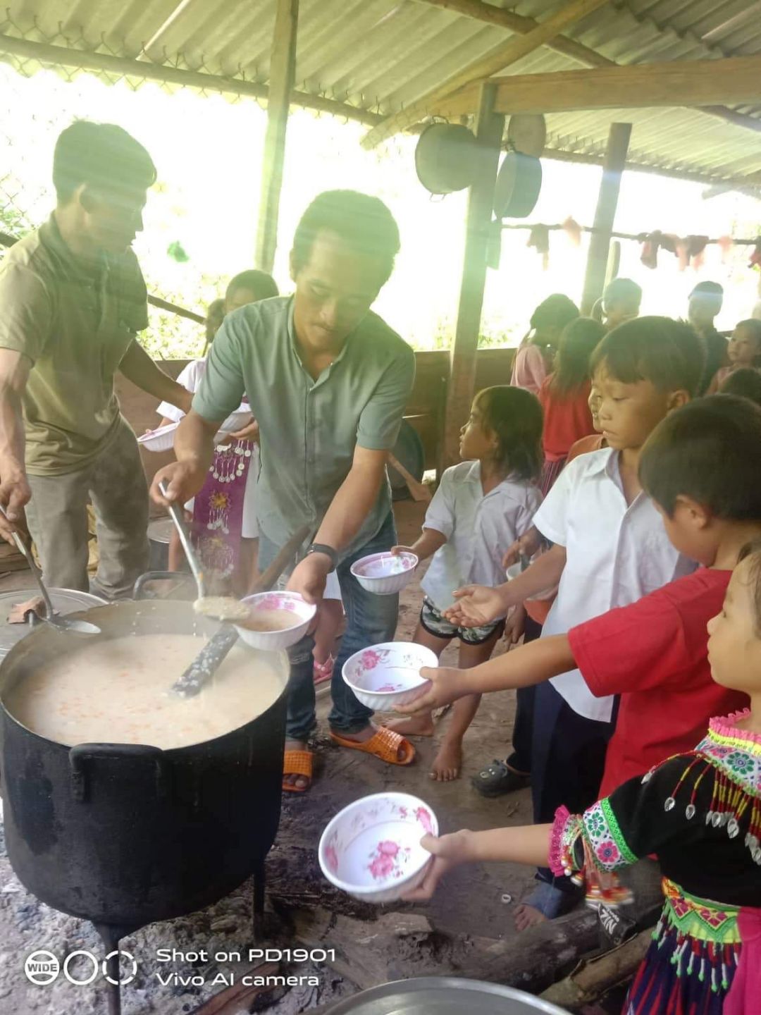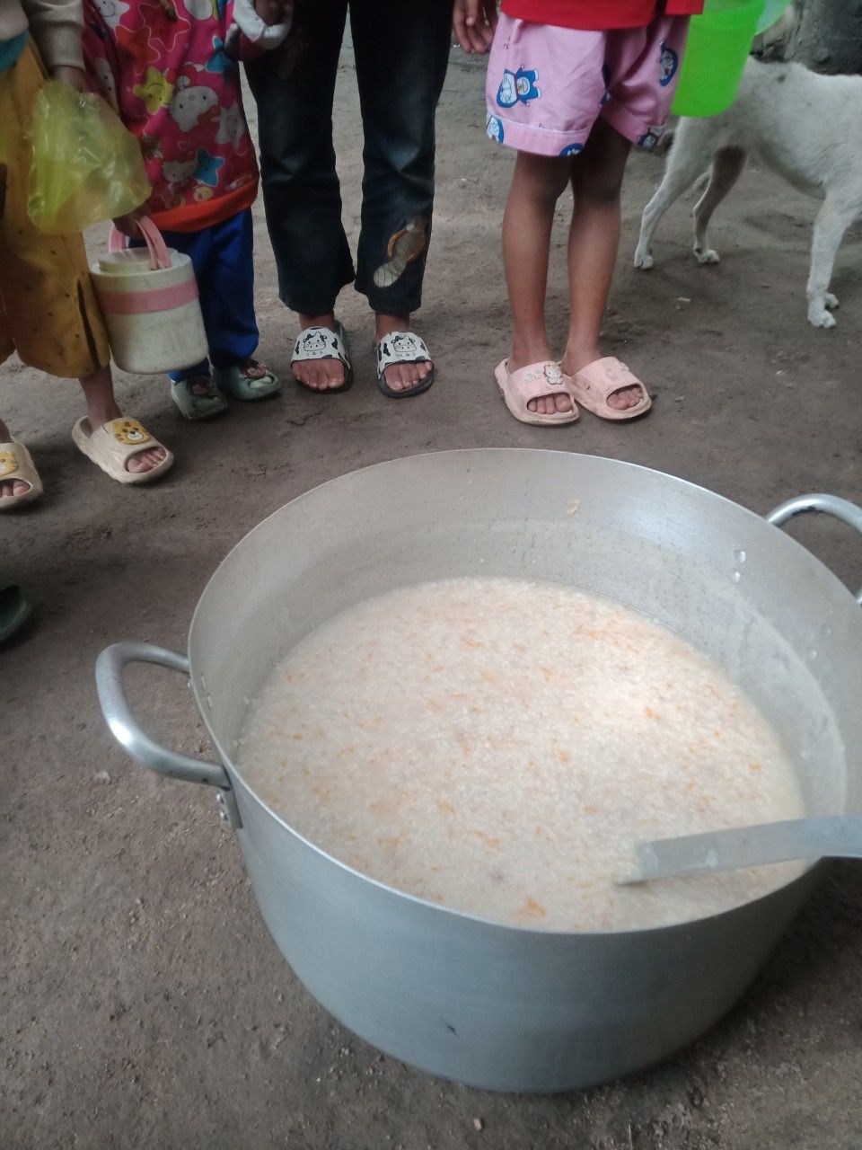 Nồi cháo sáng nay tại buôn Đăk tuôr cả nhà ạ!