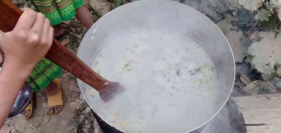 Hình ảnh nồi cháo cư pui tại điểm nấu Đăk Tuôr  Cư Pui  tháng 12/2019.