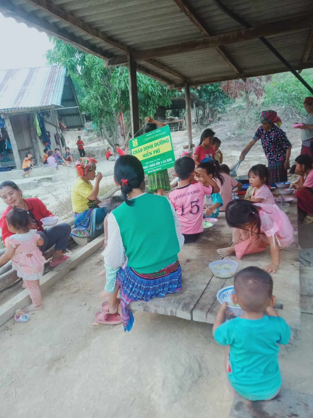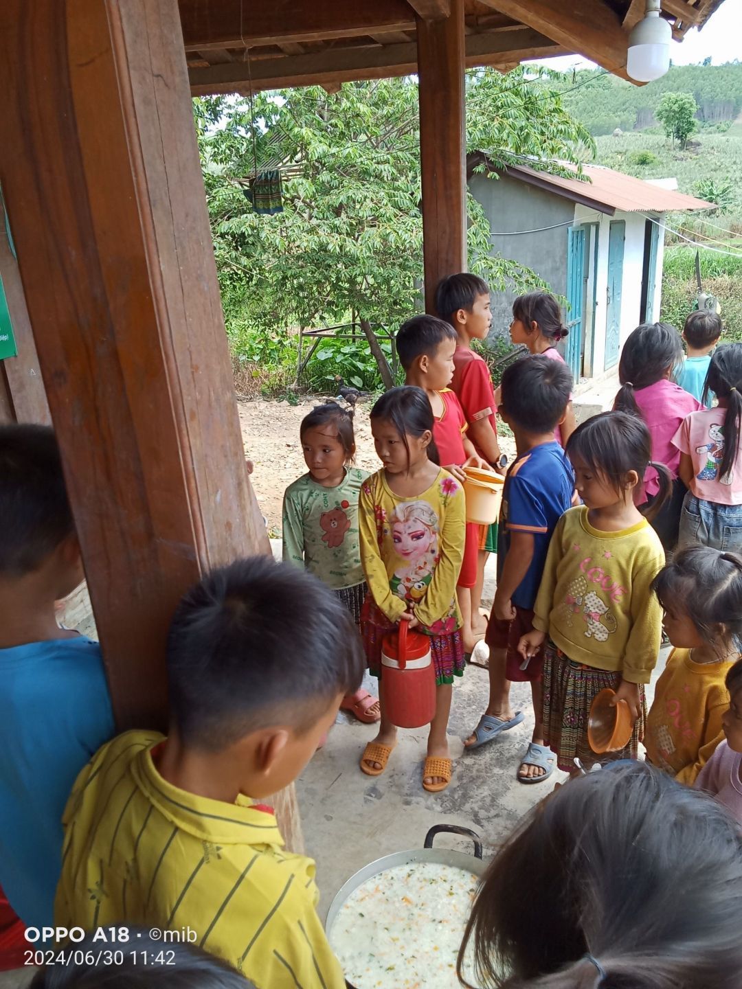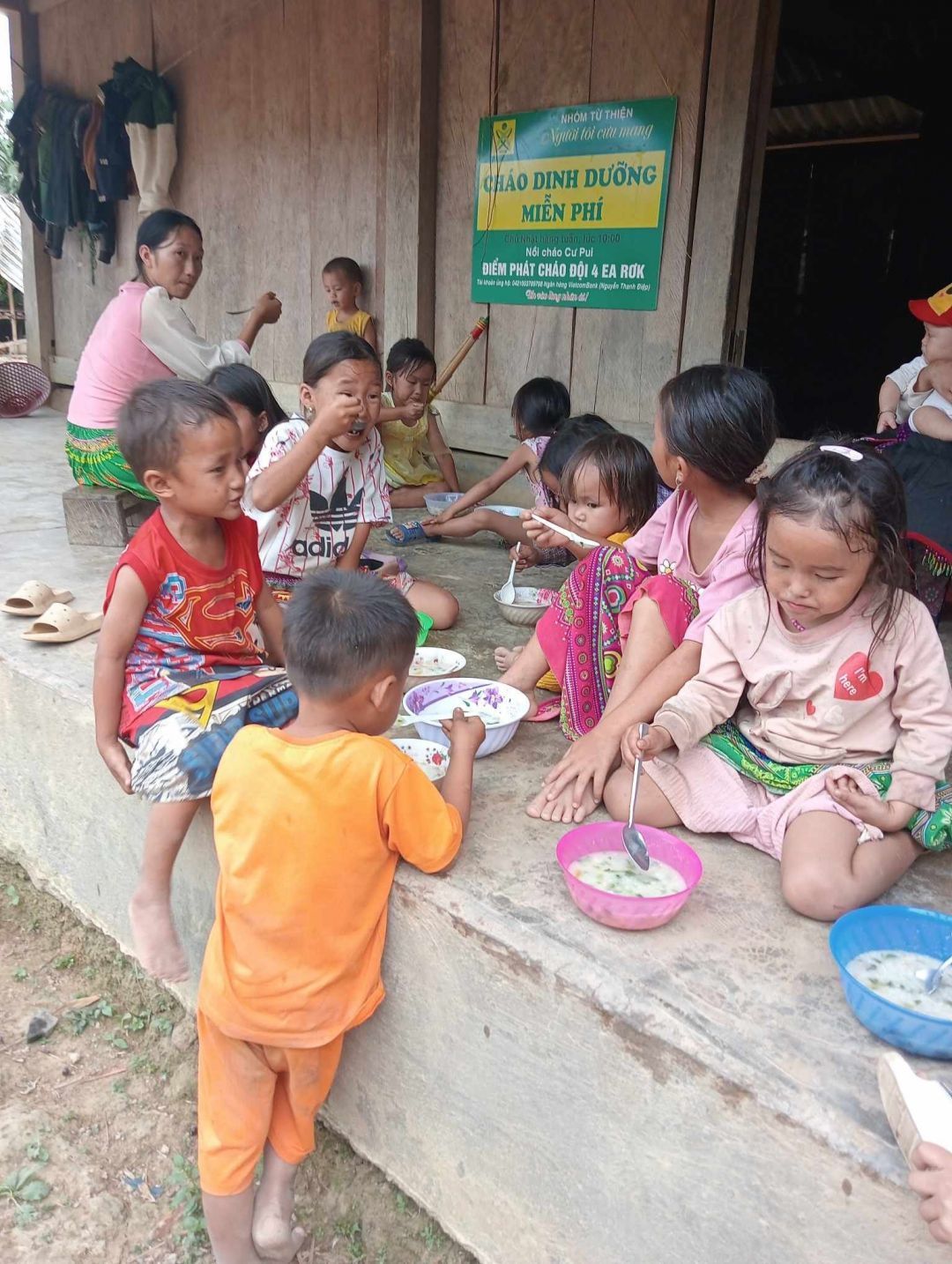 Nay các cháu được ăn trong nha văn hoá buôn cho rộng rãi, thoải mái hơn.