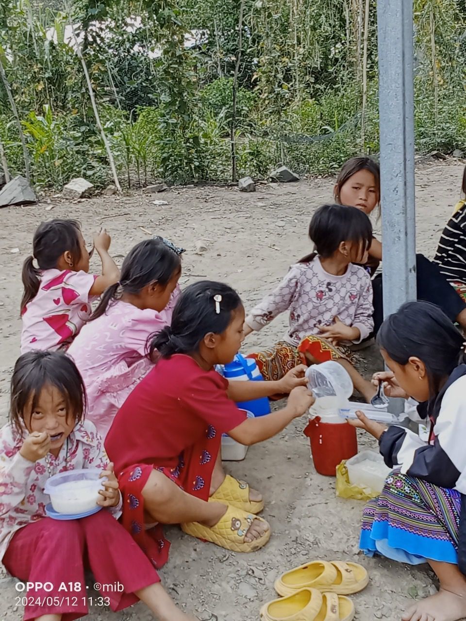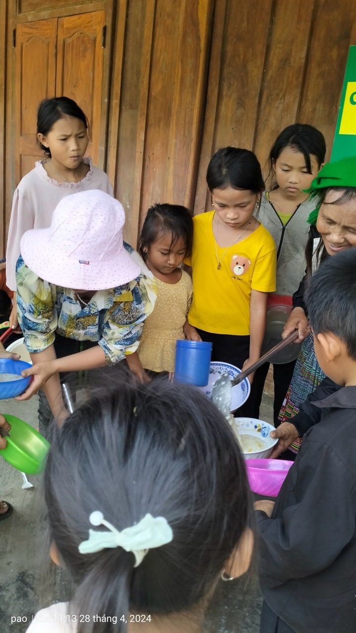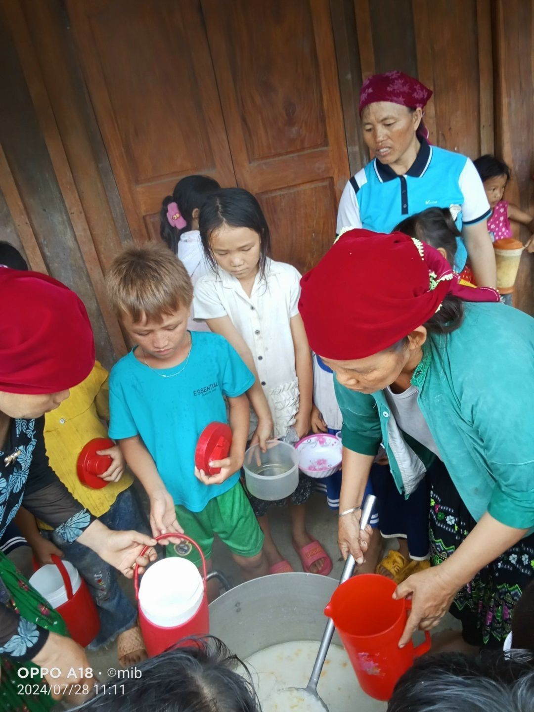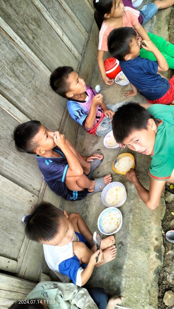 Nay các cháu được ăn trong nha văn hoá buôn cho rộng rãi, thoải mái hơn.