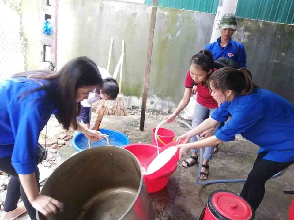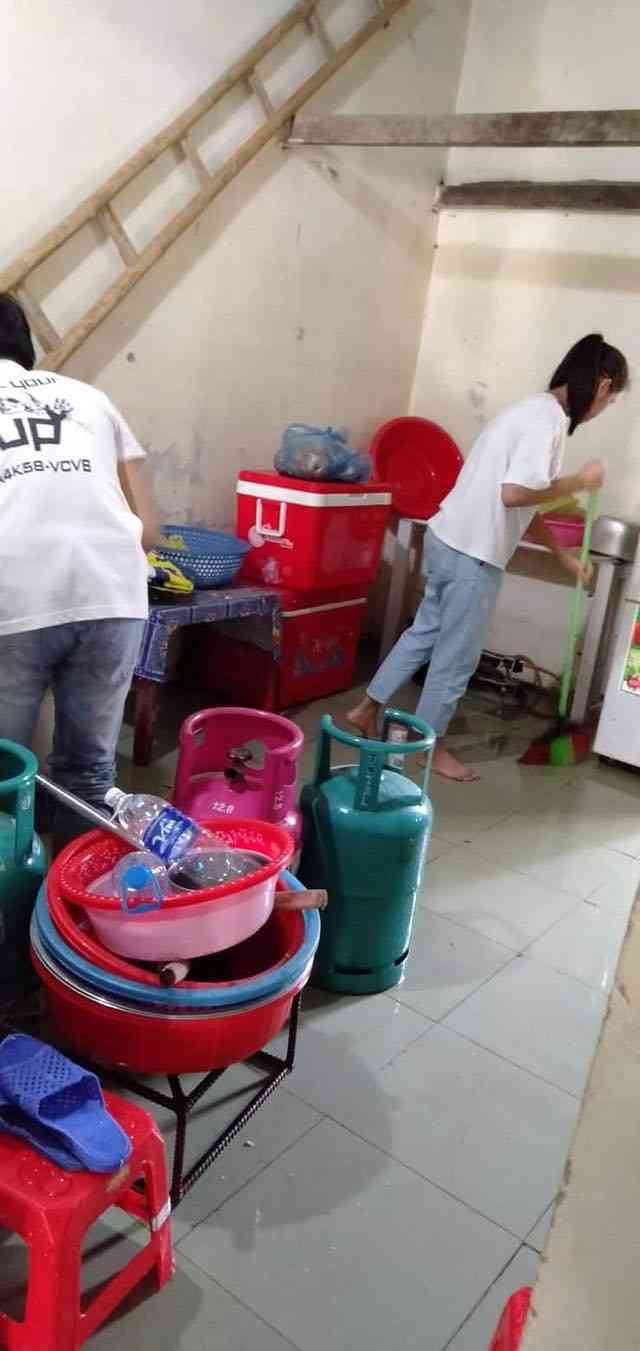 Chào cả nhà, Sau đợt mưa lụt ở Vinh chỗ nấu cháo tan hoang , các TV đang dọn dẹp .