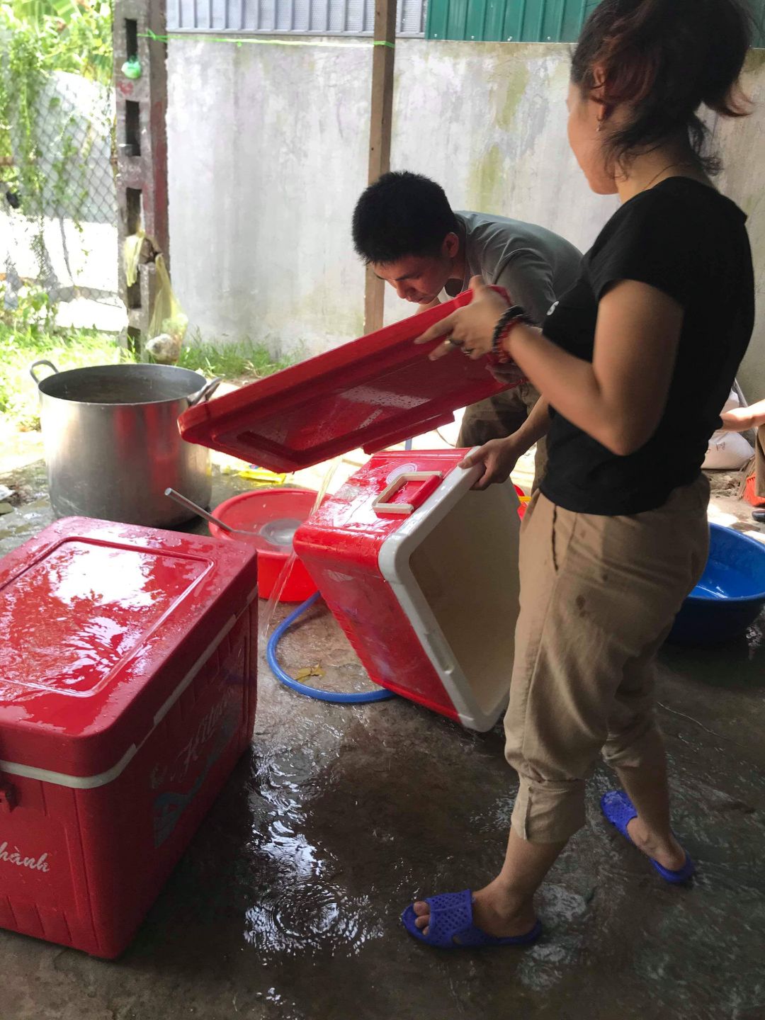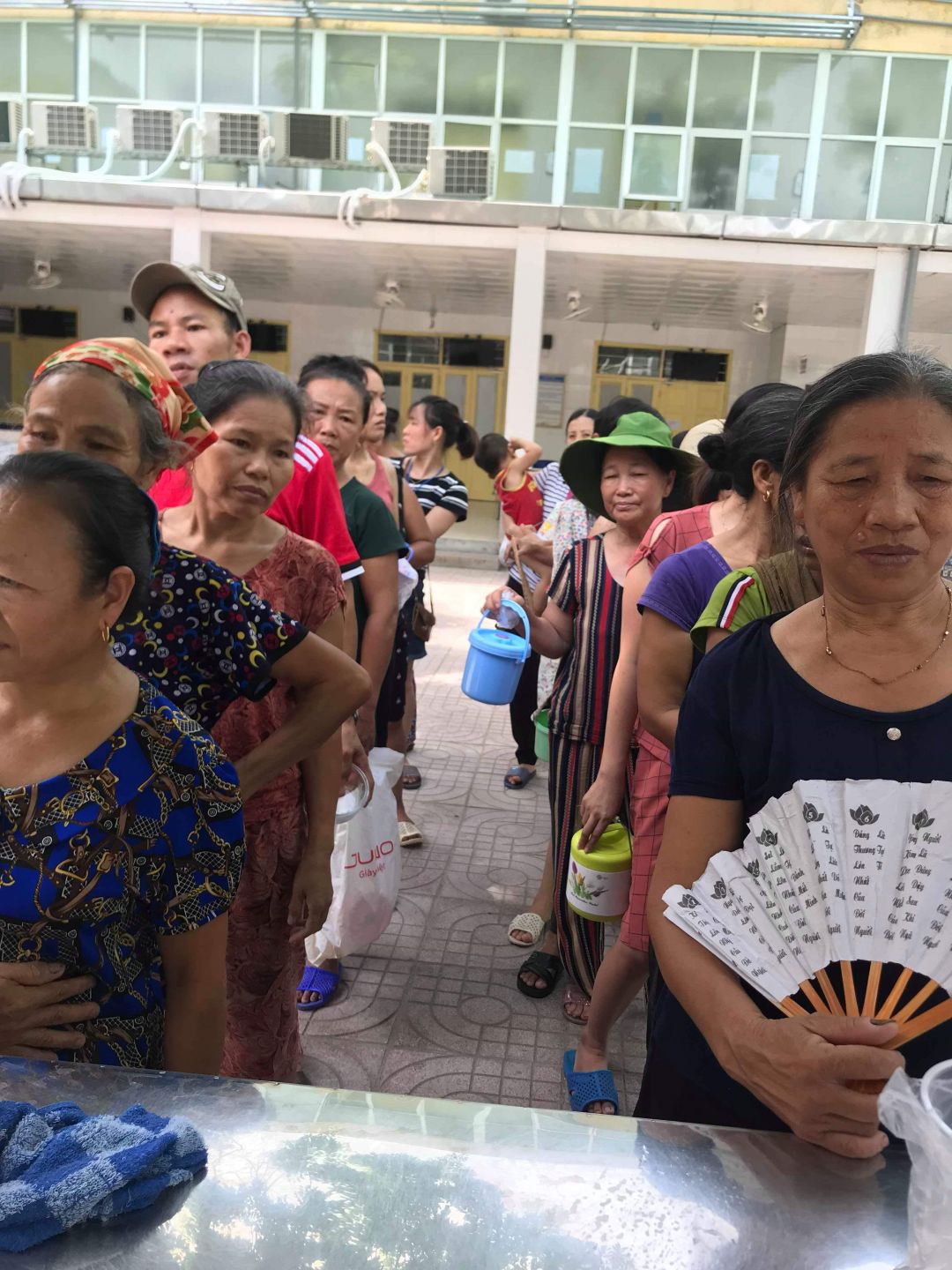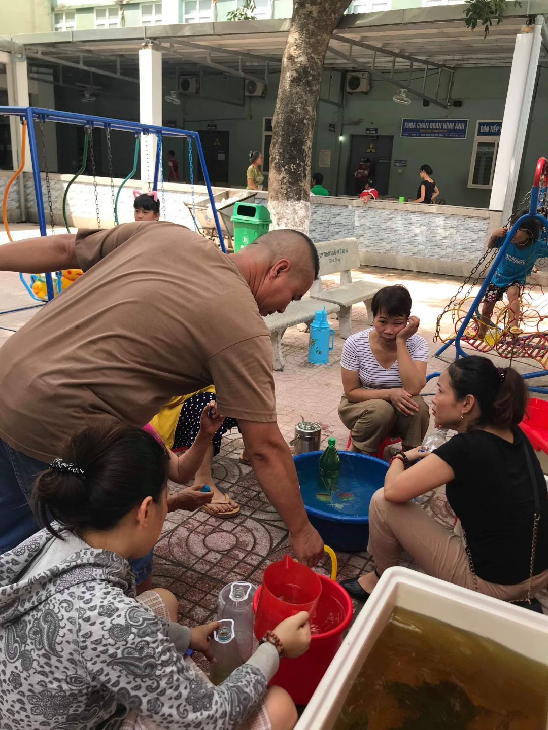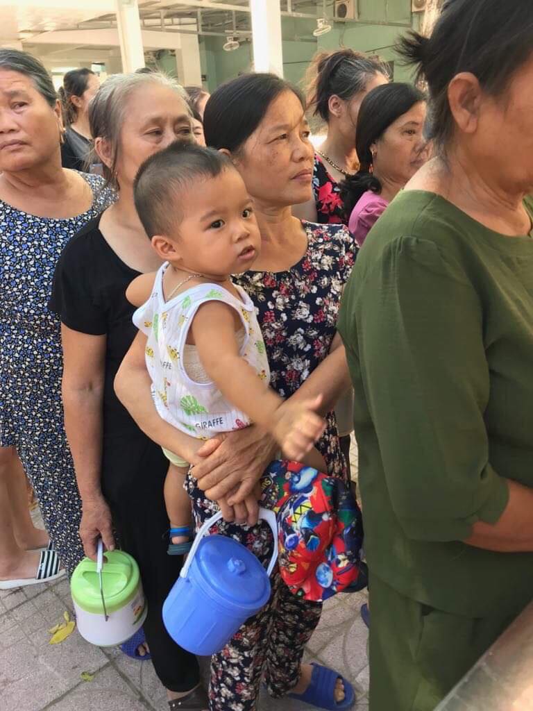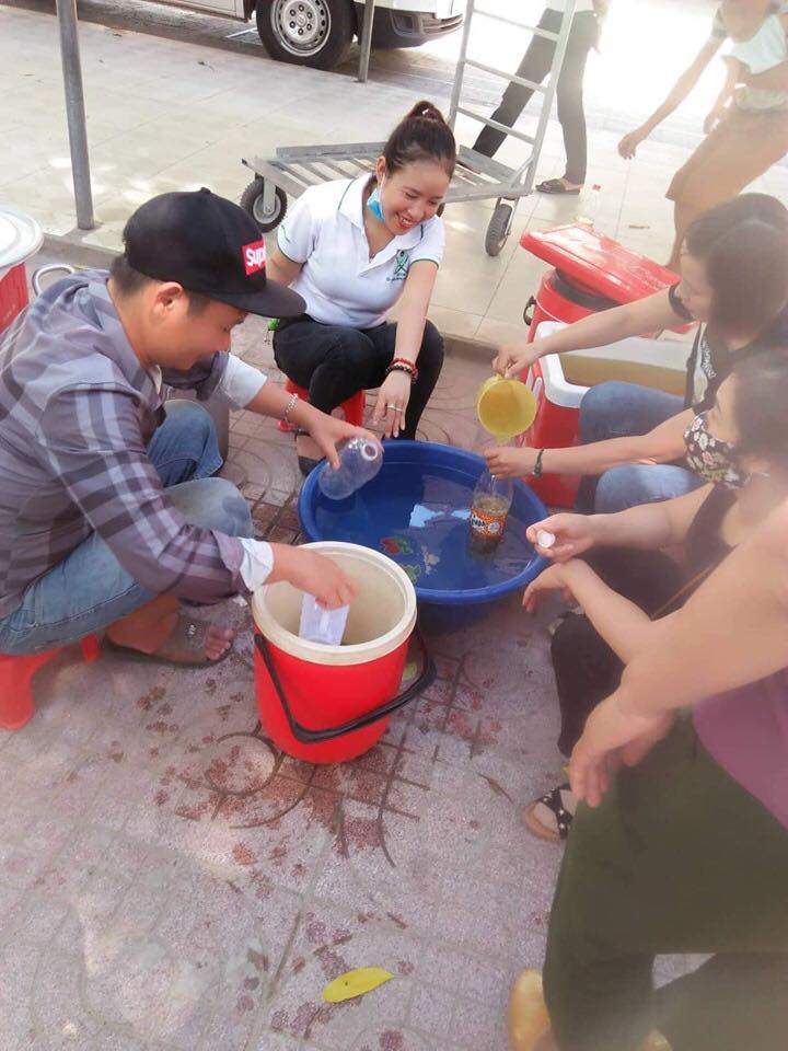 Hiện tại tụi con xin phép cho đội nấu thêm 2 nồi nước vối để phát cho người nhà bệnh nhân là các bà các mẹ chăm cháu. Nắng rất thương . Đã xin được 4 thùng đựng nước lớn. Và đã triển khai nấu và nhận được sự đồng tình và rất nhiều người xin nước. Vậy mới biết ở viện nước uống cần thiết đến như thế nào.