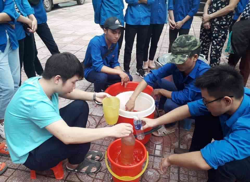 Chào cả nhà, Sau đợt mưa lụt ở Vinh chỗ nấu cháo tan hoang , các TV đang dọn dẹp .