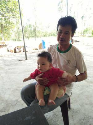 Hiện tại, anh Huân đi chữa bênh, thì vẫn có con nhở ở nhà ( học lớp 6) có thể chăm gà và chăm bê, bò ( nếu có).