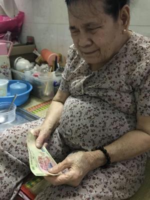 Loannguyen gửi cả nhà ảnh trao tiền tháng 7,8,9,10/2021 tổng 1,200,000đ từ anh Viethuong đế cụ Tốt.