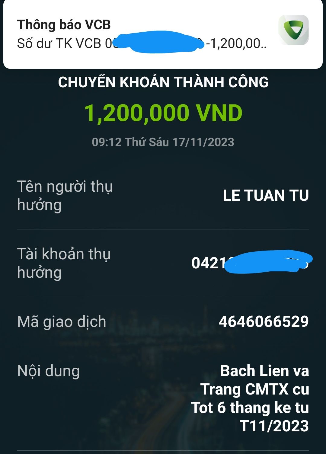 Letuantu đã nhận được tiền rồi, sẽ trao sớm cho cụ Tốt.