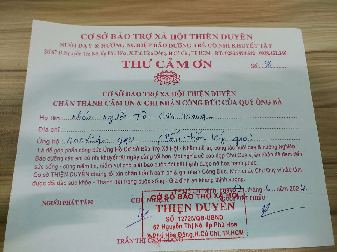 Letuantu đã gửi 400kg gạo đến mái ấm Thiện Duyên.
