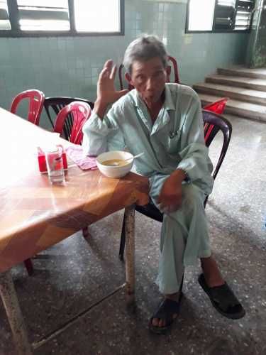 vị trí phát cháo: ngay trong căn tin bệnh Viện Việt Nam - Cu Ba - Đồng Hới