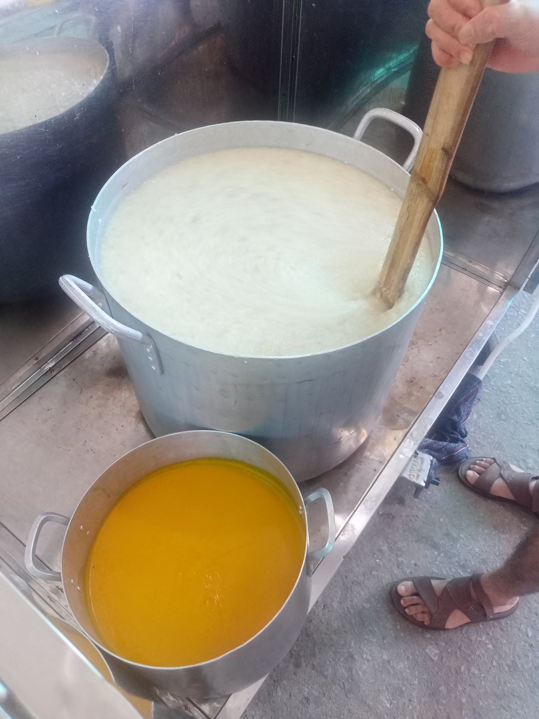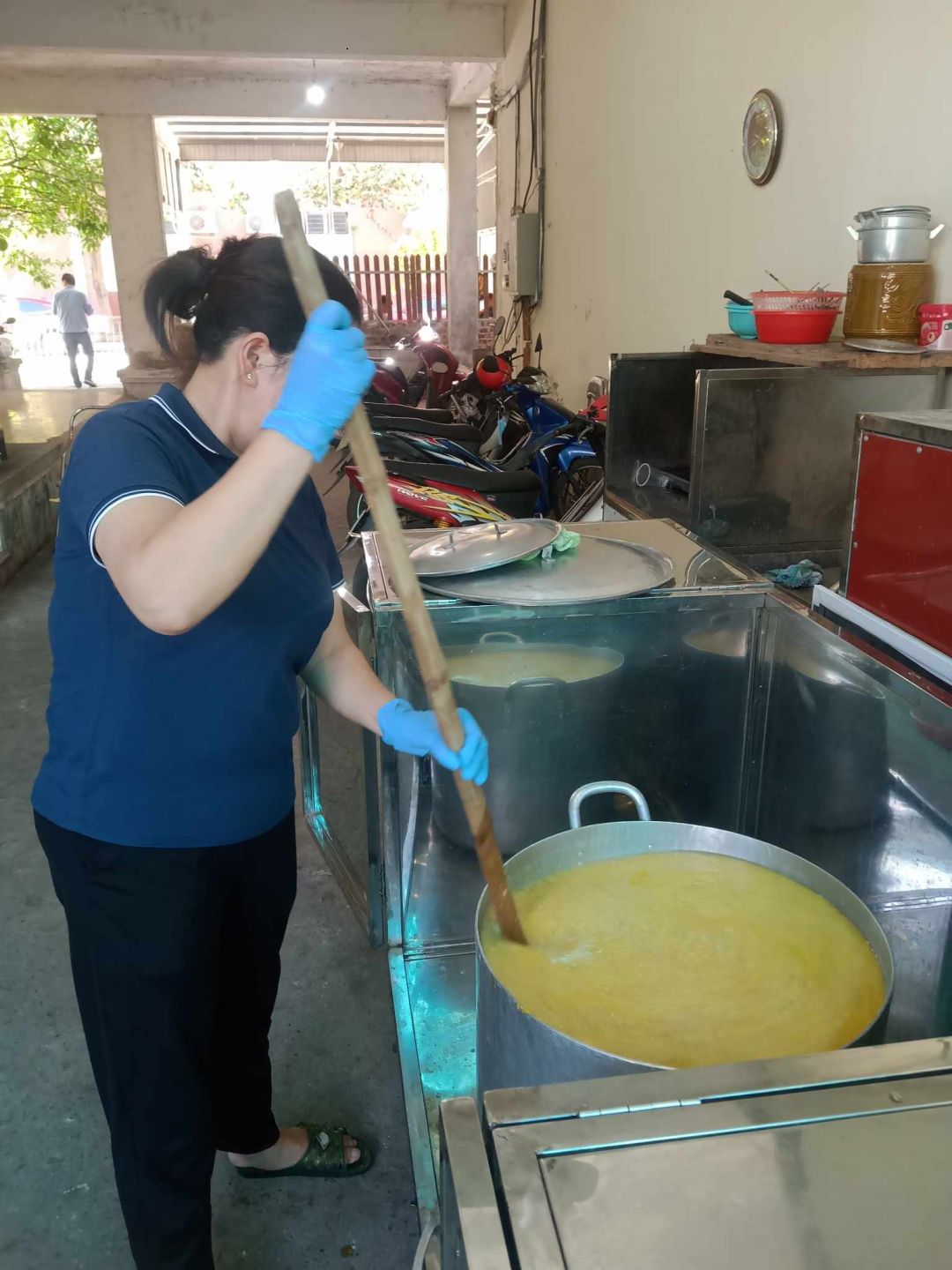Nồi cháo đầu tiên của tháng. Trời nắng nóng tình yêu thương càng nhiều , nhân lực lại mỏng nhưng đã có chị Mai Hương vất vả nhất ạ. Cảm ơn hai bạn sinh viên và một bạn mới.