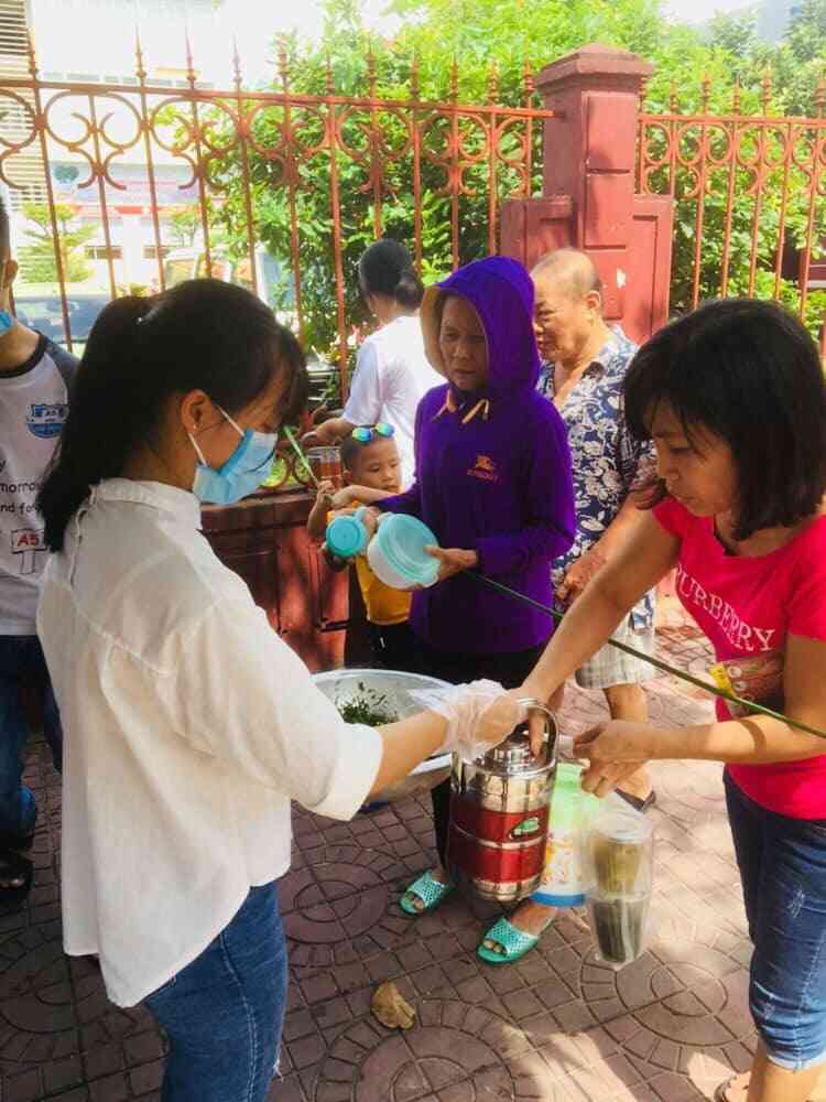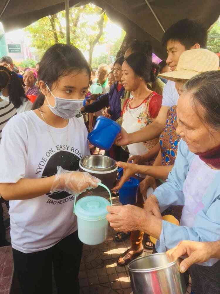 Trời thương những người có lòng, nguyên cả buổi sáng trời mưa như trút nước, đến giờ phát cháo trời tạnh hẳn, lại còn nắng đẹp nữa chứ.