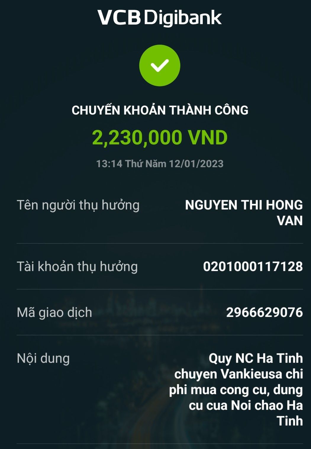Kính chào các cô chú mạnh thường quân!Cháu đã nhận được tiền CMTX.tháng2 .Cháu xin cảm ơn cô Nguyên và cô Bình nhiều ạ , cháu xin hứa sẽ học hành chăm chỉ.