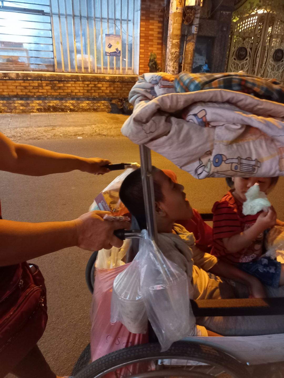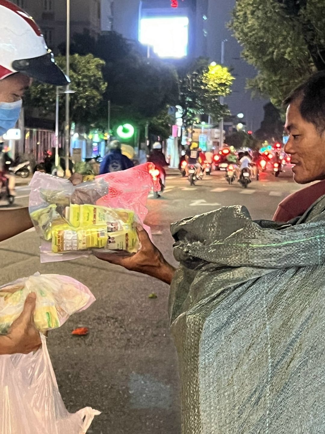 Gửi cả nhà một số hình ảnh hoạt động làm & phát xôi tối hôm nay. Tuy trời mưa nhưng mọi người vẫn hăm hở mang những phần xôi kèm hộp sữa đậu nành, trao cho bà con đang vất vả mưu sinh trên đường.