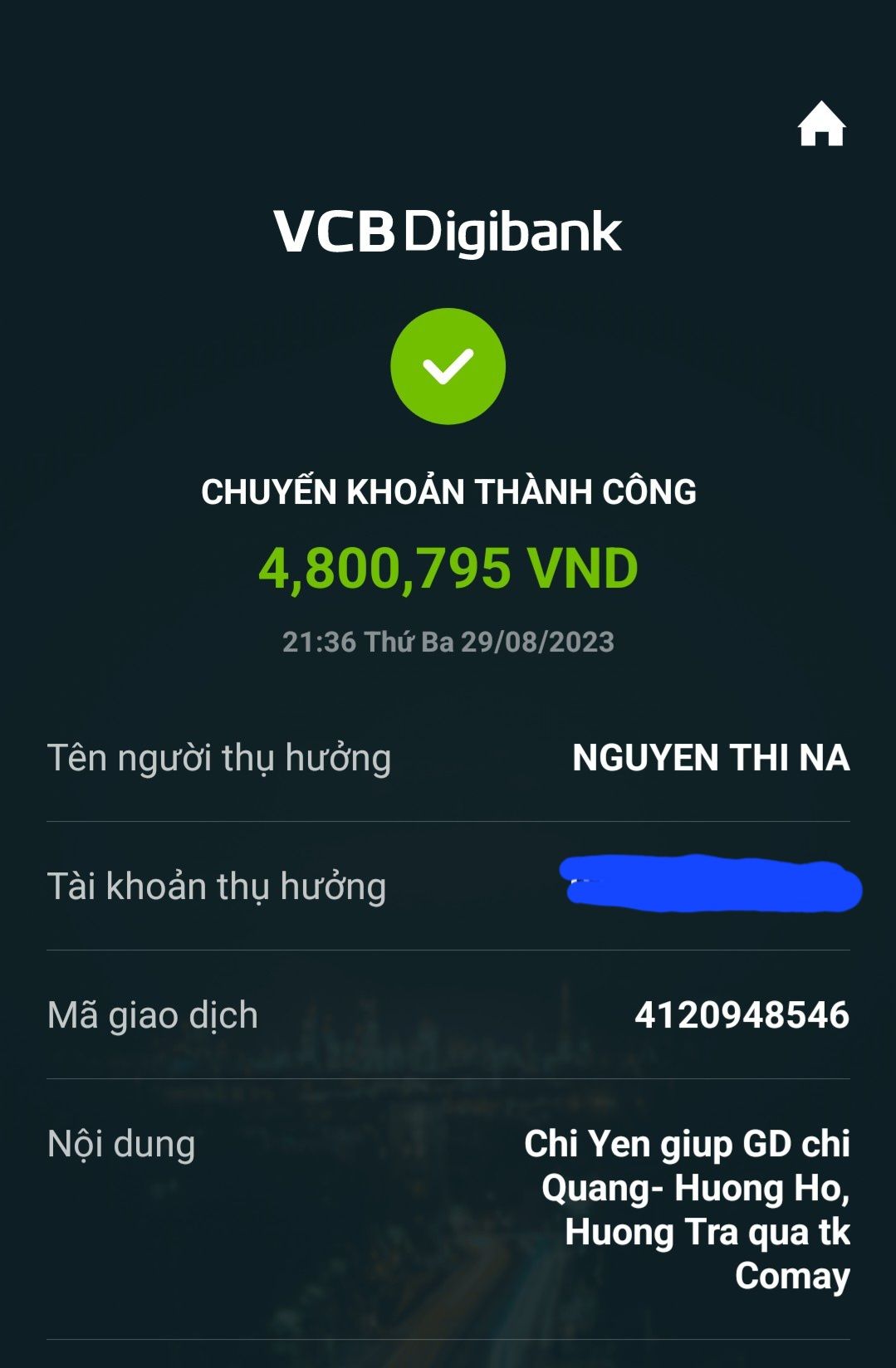 Lathuvang đã chuyển tk Comay_a2n ủng hộ của chị Yến giúp đỡ GĐ chị Quảng.