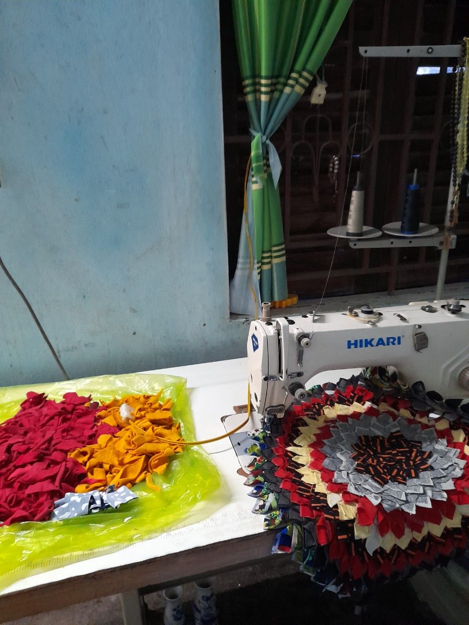 Nhờ có máy may mà em Ái con dì Quảng cũng kiếm thêm được ít thu nhập từ việc sửa áo quần và em ấy xin được một ít vải bỏ đi may các tấm thảm chùi chân bằng vải để bán. Em Ái cũng đang kiếm các đơn hàng để nhận gia công mà chưa có, nên cuộc sống cũng còn khó khăn.