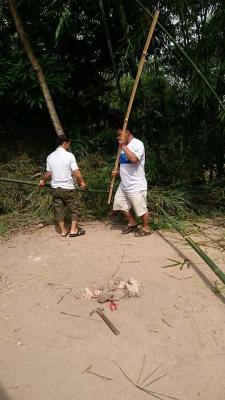 Mấy anh chặt tre ở nhà dì Quảng: