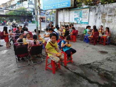 Chiều nay, letuantu có ghé gửi cho lớp học một ít rau củ từ quán cơm. Đến ngay lúc các em đang ăn cơm, chuẩn bị vào học nên letuantu có chụp lại vài hình ảnh hoạt động thường nhật ở đây. Hiện tại, lớp học duy trì sỉ số khoảng 100 em, hàng ngày đều có các thầy cô thân quen đến hỗ trợ giảng dạy.