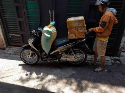Hôm nay, chú Hùng có ghé quán để nhận cháo gói, letuantu đã gửi trước 100kg gạo cho chú chở về, số còn lại letuantu & các bạn sẽ giao sau.