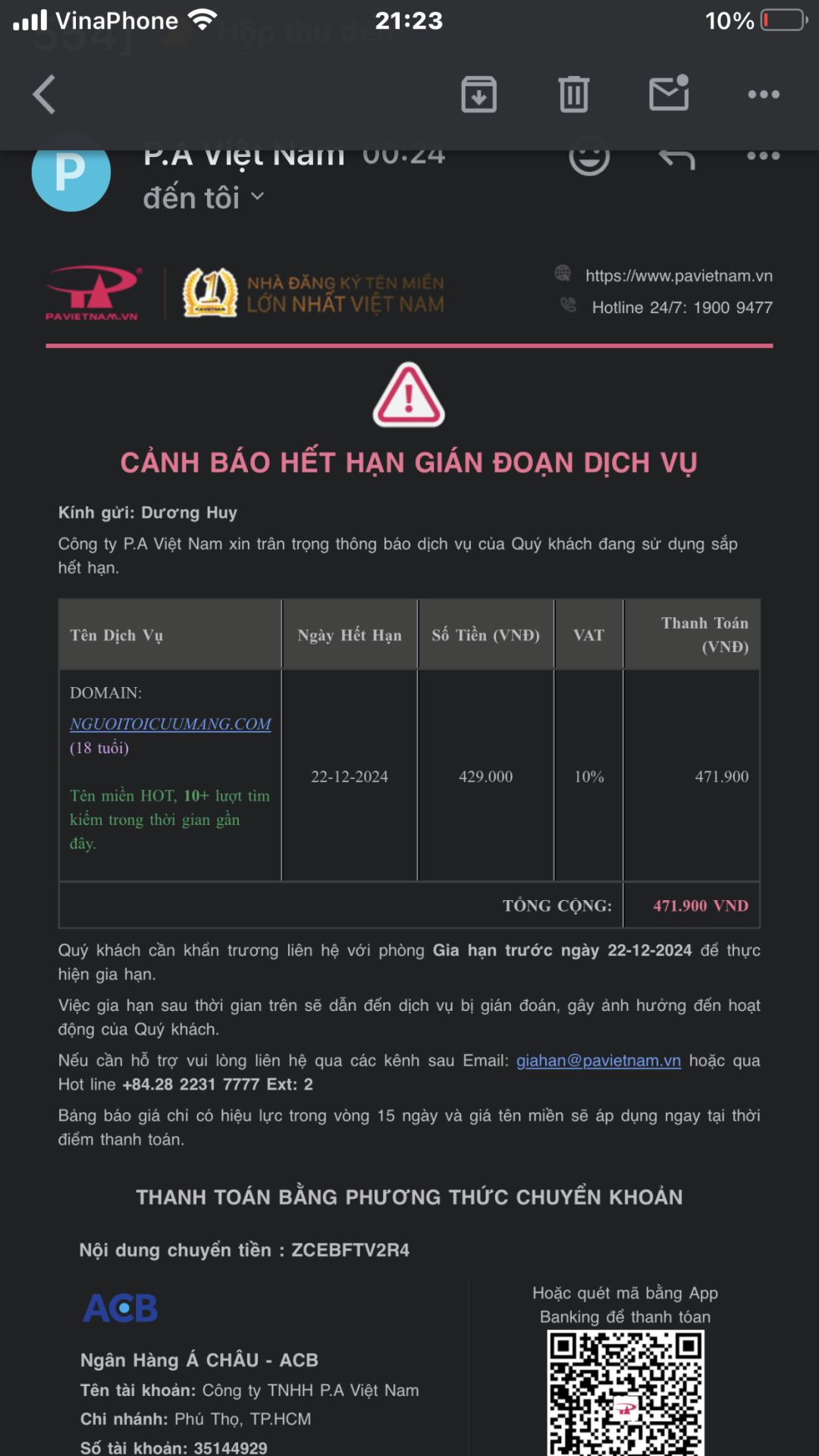 Xin phép chuyển đến cả nhà mức giá của việc mua tên miền của chúng ta từ PA VN