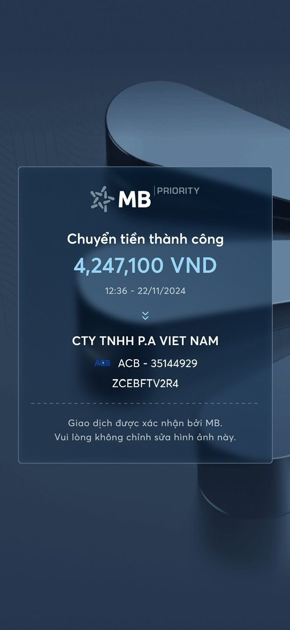 Sau khi chuyển khoản thành công vui lòng gởi biên lai lên đây để admin làm việc tiếp thủ tục với PA theo yêu cầu.
