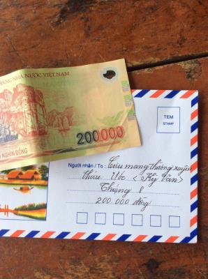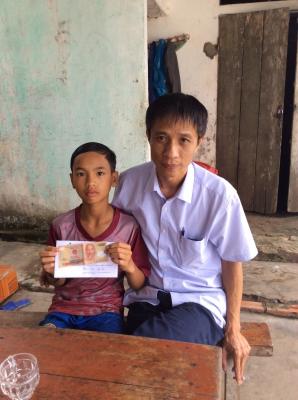 Ngày 30/7 LNLB đã về lại Kỳ Văn- Kỳ Anh thăm và trao CMTX tháng 7 cho cháu với số tiền 400.000đ từ yêuthuowngvn và Trương Giang, đồng thời trao tặng cháu suất quà từ chương trình NBEDT cháu rất vui mừng khi nhận được sự quan tâm dành cho cháu từ các mạnh thường quân. Và hứa sẽ học tập tốt để không phụ công của cả nhà ạ.