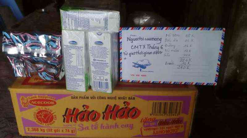 Chiều nay Ly đã đến trao tiền và thực phẩm tháng 6 đến Dì.
