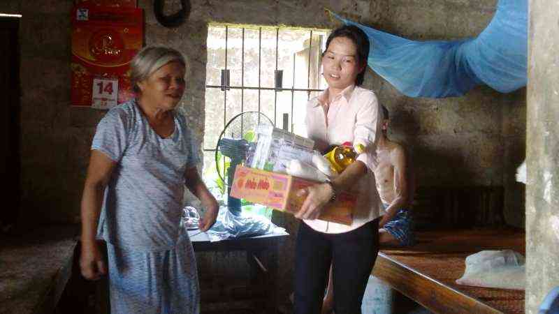 Chiều nay Ly đã đến trao tiền và thực phẩm tháng 6 đến Dì.