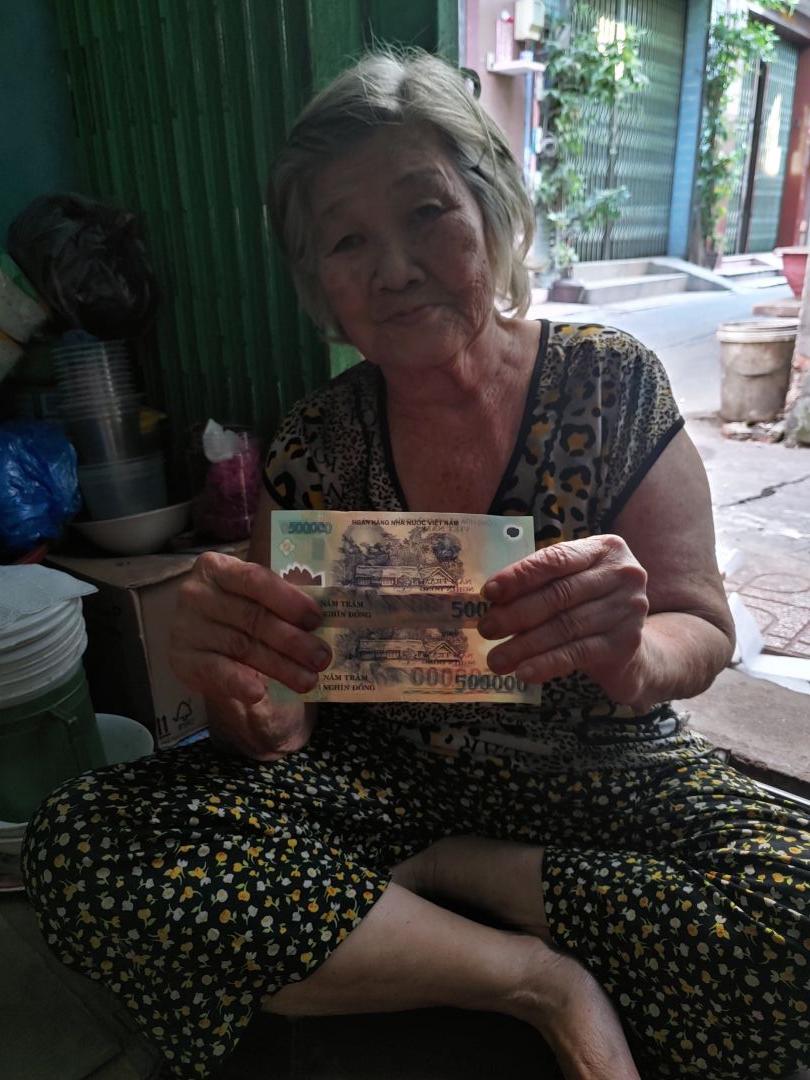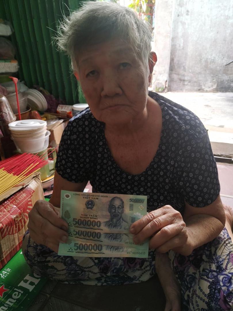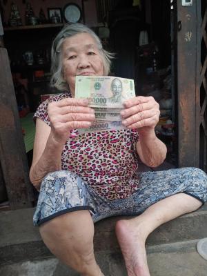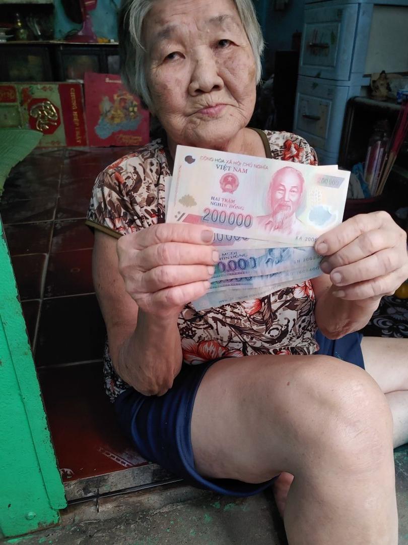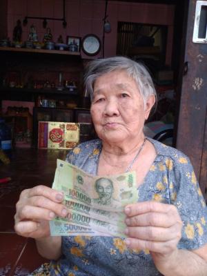 Letuantu cập nhật hình ảnh trao tiền CMTX T11 & 12 cho bà. (500,000đ/tháng)