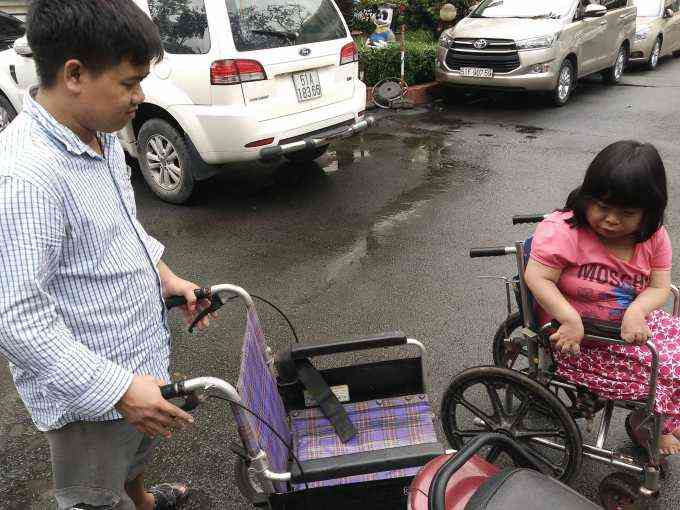 Hình ảnh gửi chiếc xe lăn cho anh chị vào đợt trước
