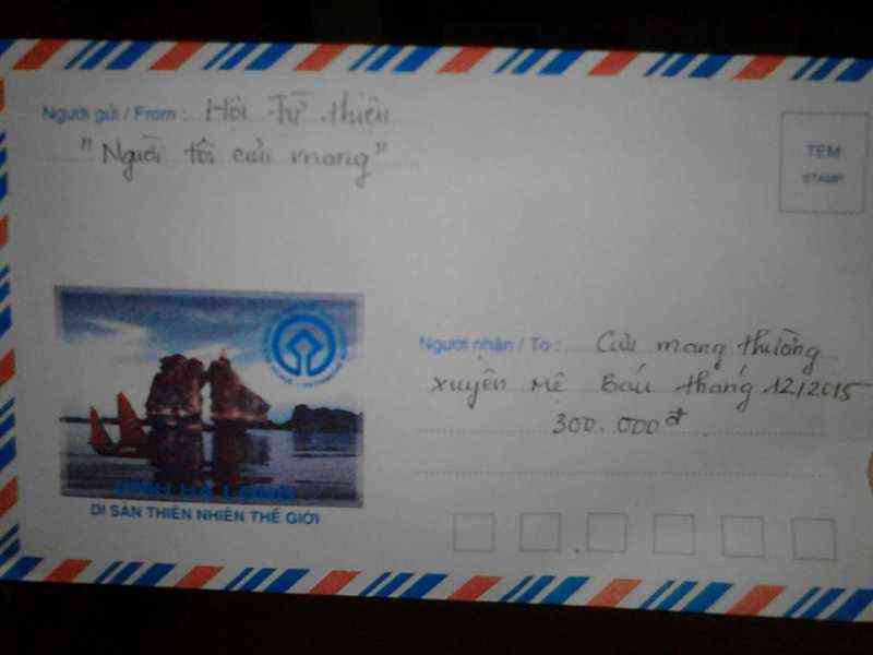 Hôm qua NT đã nhờ a Tân Lê trung chuyển dùm tiền CMTX tháng 12/2015 cho mệ Báu. Mệ gửi lời cảm ơn đến anh Kim, Ruacon và cả nhà đã giúp đỡ mệ ạ ! Thân !