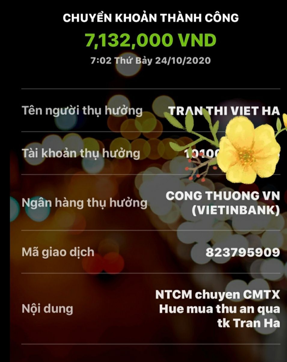 @Thocon : Em xuất quỹ chuyển tới Tran Ha 7,132,000đ dùm nhé.
