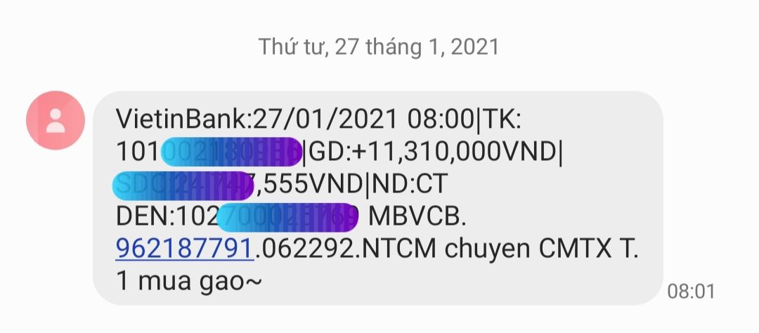 Hình như khoản tiền CMTX Gạo và các nhu yếu phẩm khác của tháng 1/2021 Tran Ha cũng đã trừ ra 1 triệu đồng 6x ủng hộ thì phải ?