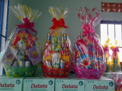 Phần Nhung thì vẫn ráng đi làm, bán hàng rong hoặc ngồi ở chợ những mặt hàng sữa tắm, dầu gội... thu nhập bấp bênh. Như hôm nay, em có đi gói quà thuê cho người ta, 5k/giỏ quà. Vì mỏi mắt và mệt nên ráng lắm em gói được 12 giỏ quà.
