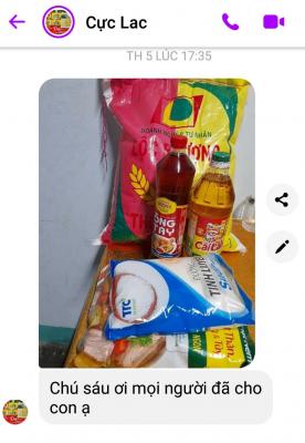 Chiều hôm qua cháu Nhung có thông báo cho 6x biết là có người tới cho Gạo và các nhu yếu phẩm rồi hóa ra là nhóm nhà ta.