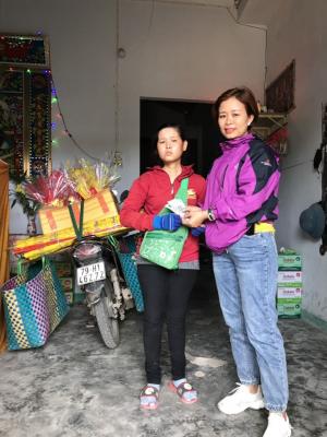 Em linh động trao 1,5 triệu tiền mặt để Nhung có thêm tiền mua sắm Tết.
