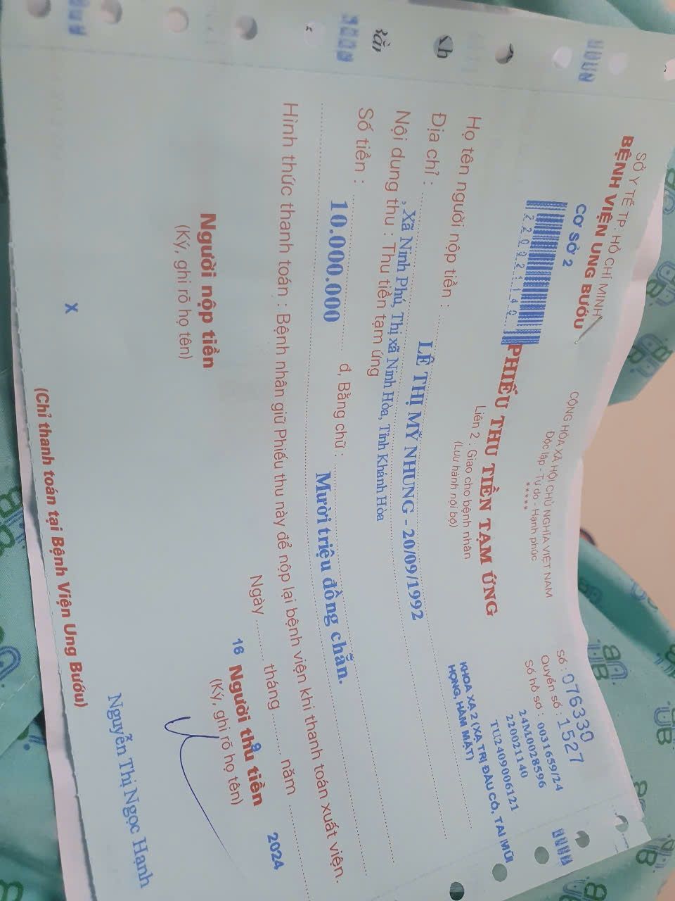 Đã xuất quỹ 5,000,000đ để hỗ trợ Nhung đóng tạm ứng vô thuốc.
