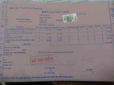 Gia cảnh nghèo khó, vào tái khám lần này, Nhung phải vay mượn những người xung quanh để có tiền chữa trị. Chi phí xét nghiệm, đóng tiền các thứ từ qua đến giờ cũng đã trên 1 triệu đồng.