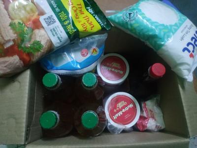 Nhóm có gửi tặng 10kg gạo, 1 chai dầu ăn, 1 chai nước mắm, 1 kg đường và 1 túi hạt nêm to.