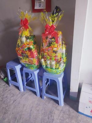Phần Nhung thì vẫn ráng đi làm, bán hàng rong hoặc ngồi ở chợ những mặt hàng sữa tắm, dầu gội... thu nhập bấp bênh. Như hôm nay, em có đi gói quà thuê cho người ta, 5k/giỏ quà. Vì mỏi mắt và mệt nên ráng lắm em gói được 12 giỏ quà.