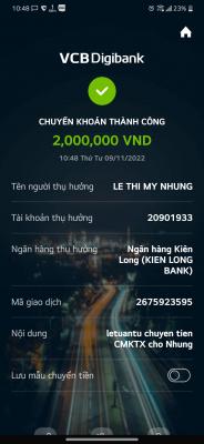 Ngày 04/10/22 lathuvang đã trung chuyển tk Nhung 900,000đ CMTX T10,11,12/2022 của Michele_du và GĐ.