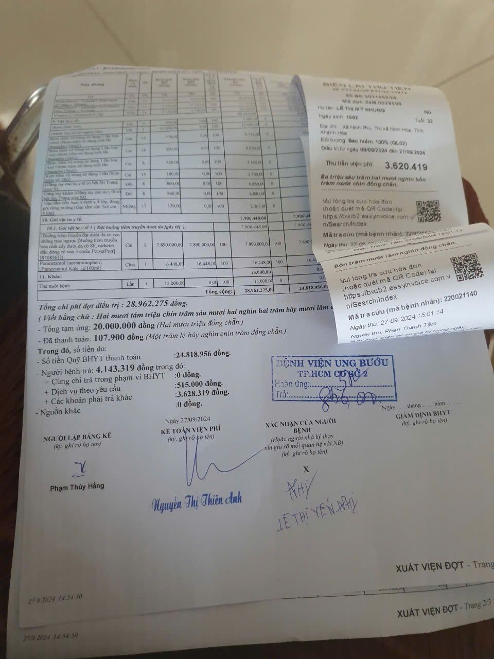 Hiện bệnh viện còn giữ tạm ứng 10,000,000đ viện phí của Nhung, nên tùy tình hình chúng ta sẽ hỗ trợ thêm sau đó.